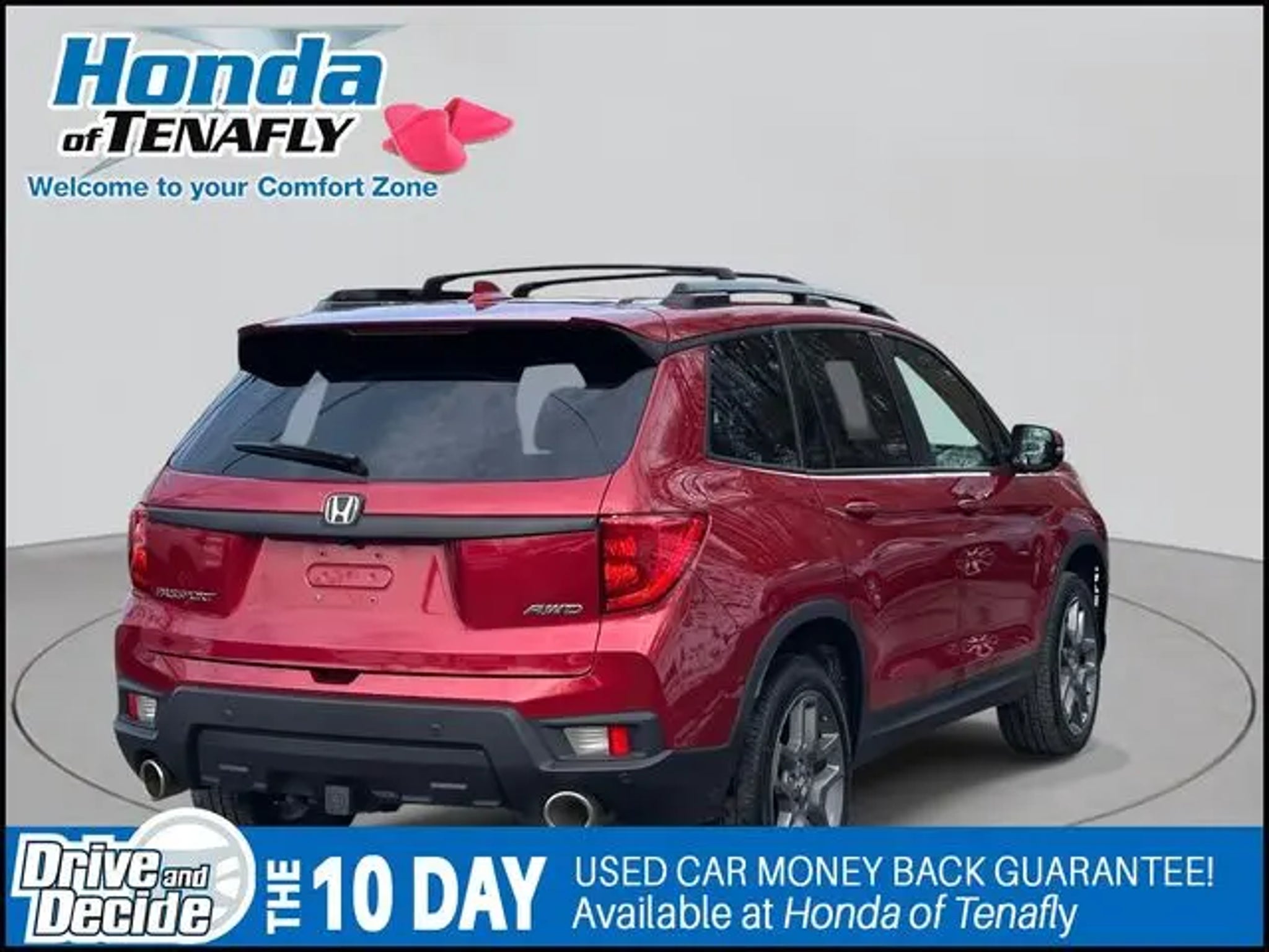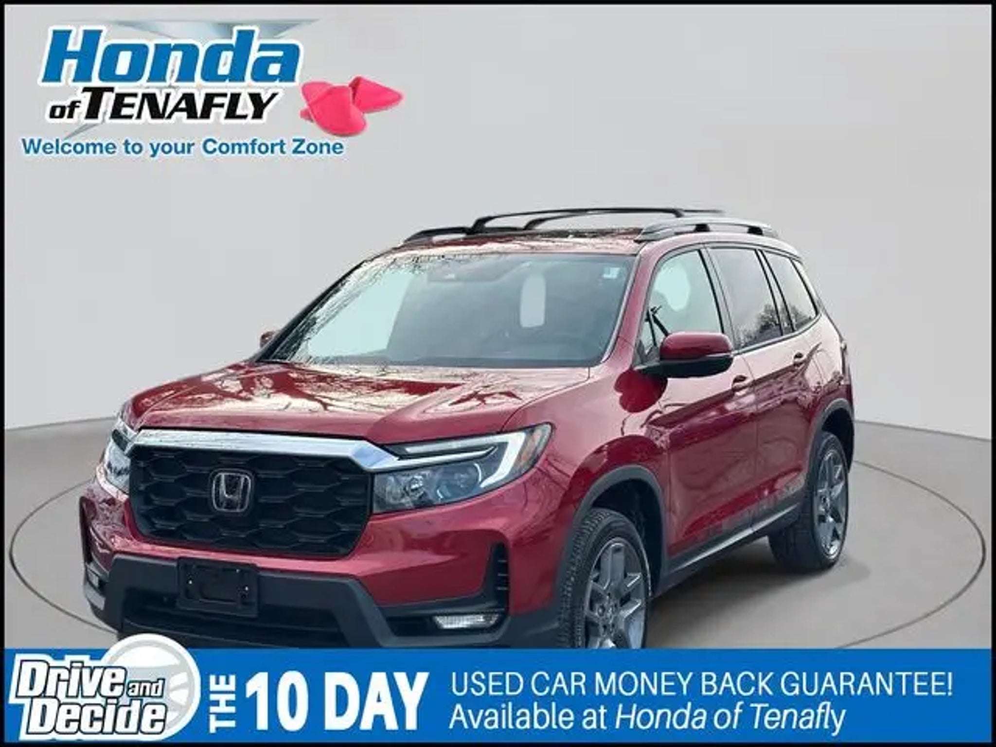 Priced below KBB Fair Purchase Price! CARFAX One-Owner. Clean CARFAX. ***ASK ABOUT OUR COMPLIMENTARY FIRST YEAR MAINTENANCE PLAN***, HONDATRUE CERTIFIED, TEST DRIVE AT HOME! WE WILL BRING THE CAR TO YOU! within 5 miles, Passport EX-L, 4D Sport Utility, 3.5L V6 24V SOHC i-VTEC, 9-Speed Automatic, AWD, Red. Red AWD 2023 Honda Passport EX-L 3.5L V6 24V SOHC i-VTEC Certified. HondaTrue Certified Details: * Warranty Deductible: $0 * Transferable Warranty * Roadside Assistance * 182 Point Inspection * Vehicle History * Powertrain Limited Warranty: 84 Month/100,000 Mile (whichever comes first) from original in-service date * Limited Warranty: 24 Month/100,000 Mile (whichever comes first) after new car warranty expires or from certified purchase date * Vehicles purchased within New Vehicle Limited Warranty period: extends New Vehicle Limited Warranty to 5 years*/60,000 miles*. Honda Care Roadside Assistance for 2 year/100,000 miles (whichever occurs first). Up to two complimentary oil changes within the first year of ownership. SiriusXM 90-Day Trial. Honda of Tenafly is New Jersey's First Honda dealership established in 1971. Family owned and operated for 48 years, we proudly serve all of New Jersey, New York, Connecticut, Pennsylvania and the entire world. * WE FINANCE * WE SHIP WORLDWIDE * Not all pre-owned vehicles come with 2 keys. Expect pre-owned vehicles to have minor nicks, chips. All prices plus tax, title, lic, and $899 documentary fee. Pre-owned internet prices exclude $1995 Pre-delivery Service Inspection Fee.